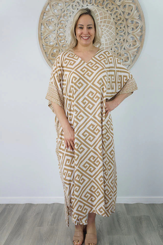 Introducing our elegant & effortlessly free & flowy Taupe Highlander, long kaftan dress.