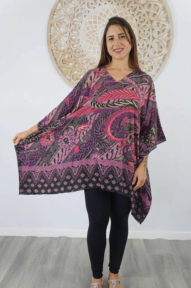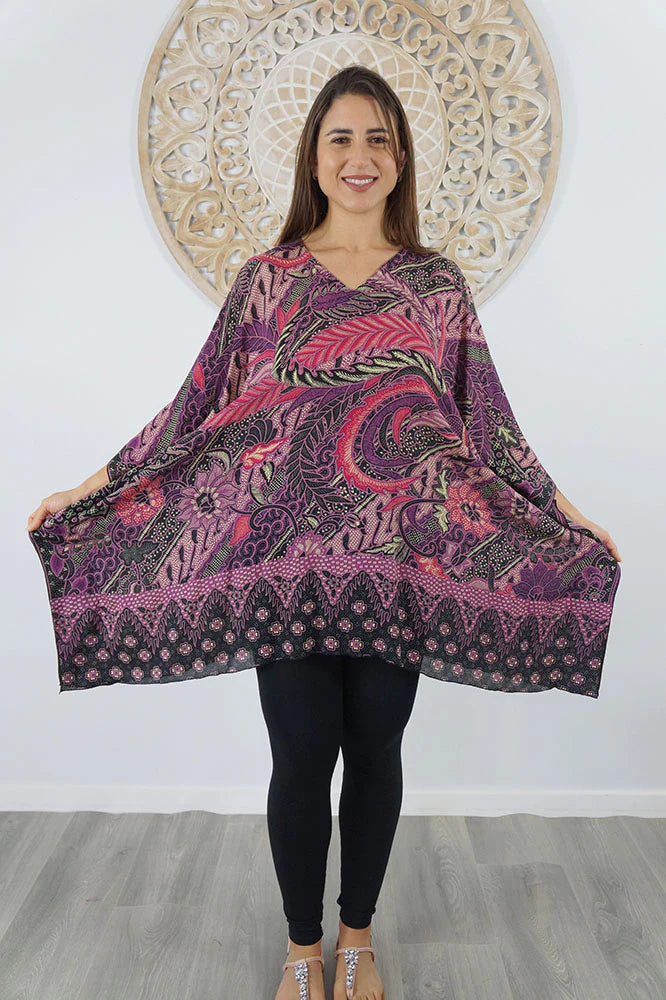 Beautiful Retro Batik purple kaftan top.